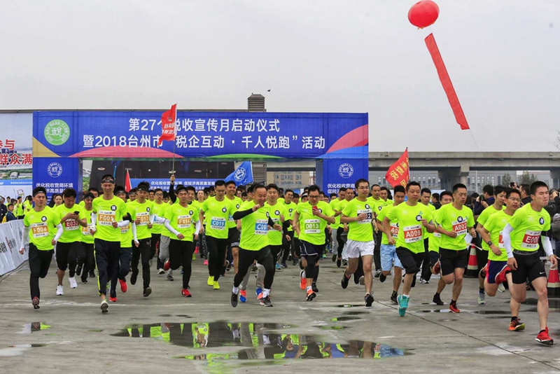 4月15日上午,随着一声发令枪响,来自于台州财税、国税、台州湾集聚区、环保、吉利•亚欧汽车、南洋科技等近千人“税企悦跑团”成员从台州湾循环经济产业集聚区,并肩齐向企业方向开跑。本次活动以Mini马拉松5公里短程跑的形式展开,沿途设有醒目、通俗的税收宣传标语,千名运动员在享受“悦跑”的同时,进一步加深纳税认知。