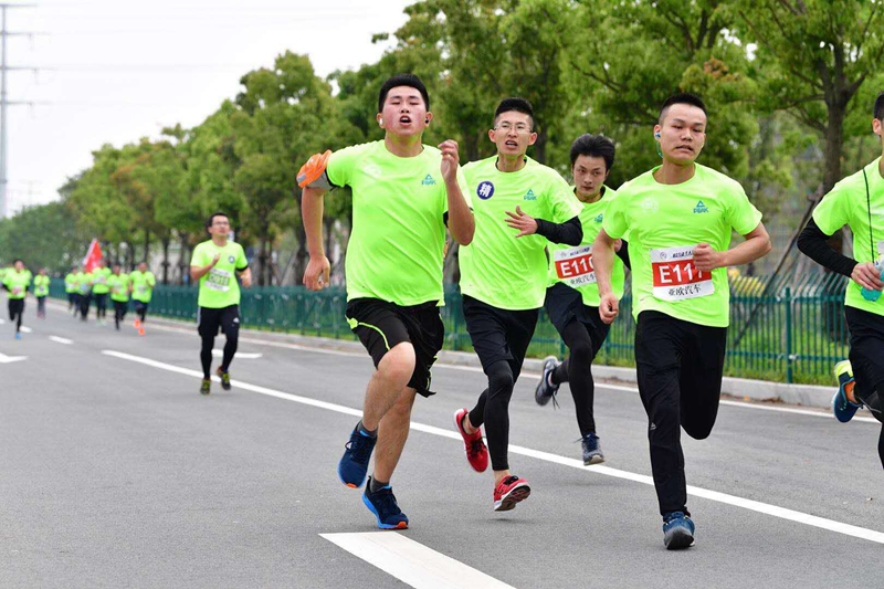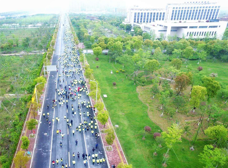 本次活动适逢雨后初春,千名运动员们身着绿色运动服,形成了沿途跳跃的“绿点”,更是点缀了台州湾畔的春意盎然。