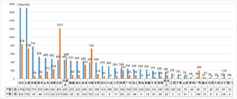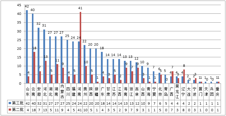 第三批示范项目涉及全国22个省、4个自治区、3个直辖市、4个计划单列市及新疆生产建设兵团共34个地区,相比第二批示范项目,新增4个地区,分布区域进一步扩大。